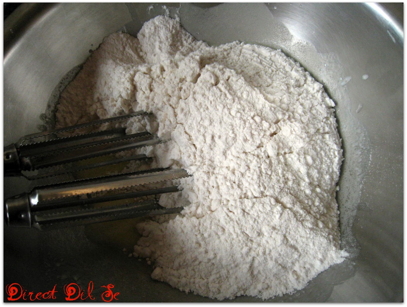 Method:1.Melt the butter and pour it in a mixing bowl.Now add curd,oil,sugar and soda and mix well.