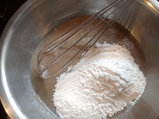 Fold in the dry ingredients little at a time with the wet ingredients.